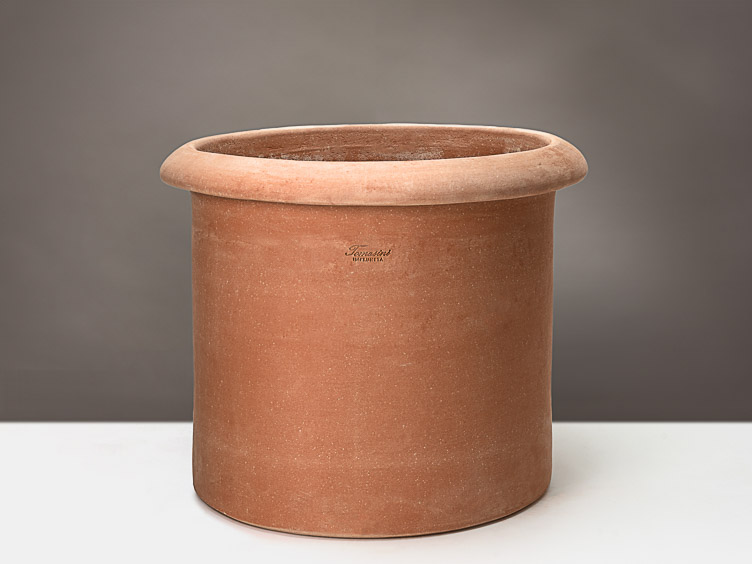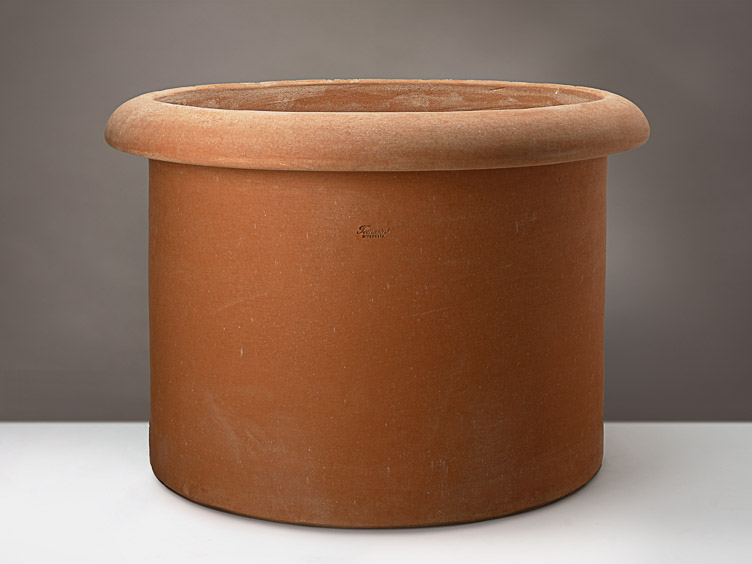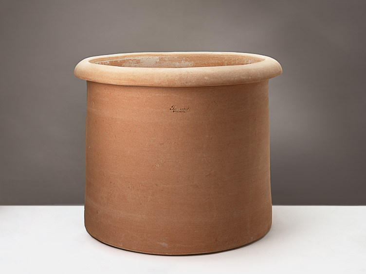 Ein schlichter zylindrischer Topf mit einem robusten Randabschluss, der nicht nur eine elegante Note verleiht, sondern auch praktisch beim Umplatzieren ist. Perfekt für Ihre Pflanzen und Ihren Garten.